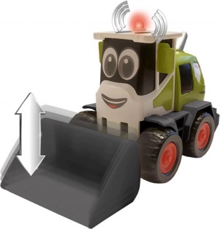 Ta urocza ładowarka CLAAS Mini w zielonym kolorze z czarnymi kołami i czerwonymi detalami zachwyci najmłodsze dzieci realistycznymi funkcjami. Po naciśnięciu przycisku słychać dźwięk silnika i włączają się światła ostrzegawcze. Ręcznie sterowana łyżka umożliwia łatwe podnoszenie i opuszczanie, co wspiera motorykę małą.