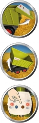 Traktor Claas z przyczepą oferuje autentyczne doświadczenie farmy dla małych dzieci. Zabawka jest wykonana z zielonego plastiku z czarnymi i czerwonymi elementami, a jej długość wynosi około 28 cm. Dzięki słodkim oczkom zdobiącym traktor, przynosi radość i uśmiech na twarzach dzieci. Przeznaczona jest dla dzieci od 12 miesięcy i zaprojektowana z myślą o bezpieczeństwie, z zaokrąglonymi rogami i krawędziami.