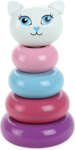 Wieża do nakładania Kitty to piękna zabawka z lakowanego drewna w pastelowych kolorach z uroczą kocią główką. Idealna do rozwoju dziecięcej motoryki małej.