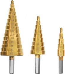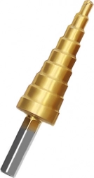 Wiertła stopniowe są idealne do szybkiego wykonywania różnych średnic jednym narzędziem. Dzięki wielu stopniom na każdym wiertle łatwo powiększysz otwór do wymaganej wielkości bez wymiany narzędzia. Powłoka tytanowa zmniejsza tarcie, wydłuża żywotność i poprawia jakość cięcia.
