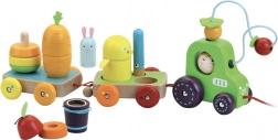 Wielofunkcyjny ciągnik Vilac oferuje dzieciom zabawę i edukacyjne doświadczenia. Ten drewniany traktor jest pełen kolorowych postaci i niespodzianek, które rozwijają ich wyobraźnię i umiejętności motoryczne.