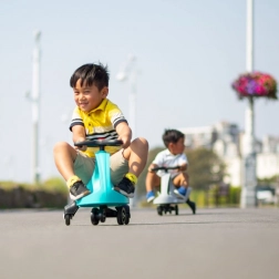 Ruszasz się, po prostu obracając kierownicę z boku na bok. Intuicyjny ruch wspiera koordynację i jest świetną zabawą dla dzieci i dorosłych.