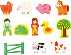 Odkryj urok farmy w praktycznym wydaniu. Podróżna walizeczka po rozłożeniu zamienia się w czytelną planszę do zabawy, na której dzieci ożywią opowieści z 12 drewnianymi figurkami zwierząt gospodarskich. Dzięki litemu drewnu figurki są trwałe, przyjemne w dotyku i zachęcają do odkrywania żywymi kolorami.