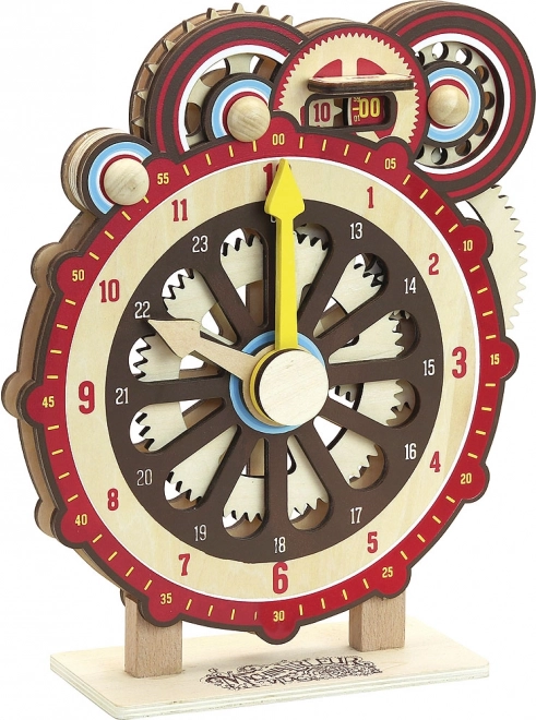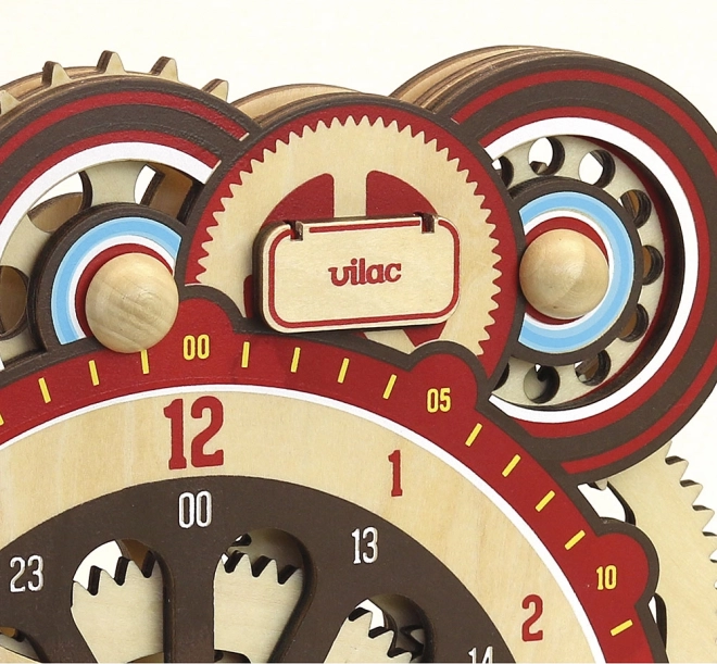 Drewniany zegar dydaktyczny VILAC w przystępny i angażujący sposób wprowadza dzieci w świat czasu. Analogową tarczę uzupełnia bębnowy licznik, który naśladuje cyfrowe wyświetlanie i ułatwia orientację. Obie wskazówki i licznik są wzajemnie połączone precyzyjnymi przekładniami, dzięki czemu mechanika wiernie odpowiada prawdziwemu zegarowi – to pomaga lepiej zrozumieć relację między minutami a godzinami.