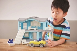 Ten domek ma otwartą tylną stronę i balkony, co pozwala dzieciom zaaranżować wnętrze według własnych wyobrażeń. Zestaw wspiera wspólną i interaktywną zabawę, gdzie dzieci mogą ćwiczyć swoją wyobraźnię. Wszystkie elementy można łatwo umieścić w domku, oszczędzając przestrzeń.