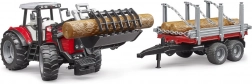 Zestaw BRUDER oferuje kultowy traktor MASSEY FERGUSON 7480 z ładowaczem czołowym i przyczepą do drewna dla maksymalnie realistycznej zabawy. Dzięki funkcjonalnym detalom, takim jak otwierana maska silnika, skrętna przednia oś i miękkie opony, dzieci łatwo poradzą sobie z załadunkiem i przewozem kłód.