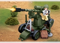Zestaw budowlany Sluban II Wojna Światowa Działo Przeciwlotnicze oferuje dzieciom zabawne i edukacyjne doświadczenie. Zawiera 77 elementów i jednego żołnierzyka, dzięki czemu dzieci mogą bawić się obrotowymi i wychylnymi częściami, wspierając zdolności manualne i wyobraźnię.