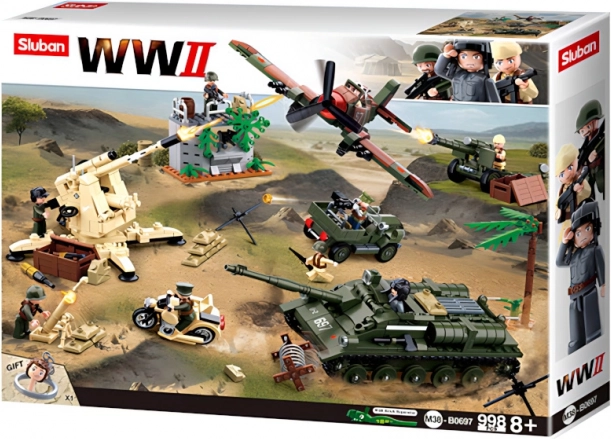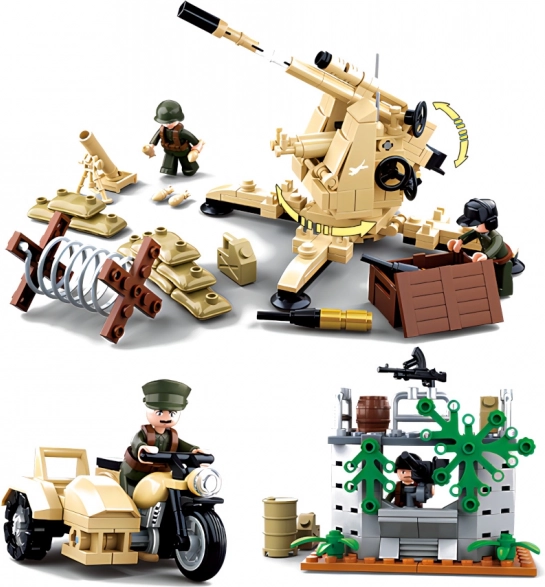 Zmontuj działko przeciwlotnicze i rusz do akcji na motocyklu z wózkiem bocznym. Idealny dodatek do dynamicznych scen i taktyki zespołowej.