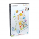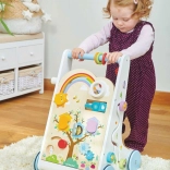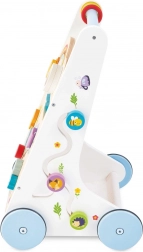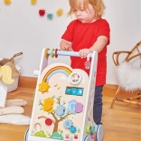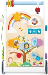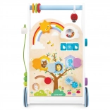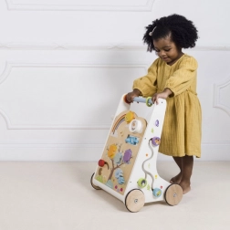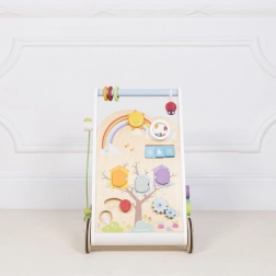 Drewniany chodzik z aktywnościami został zaprojektowany tak, aby był nie tylko zabawny, ale także edukacyjny. Dzięki niemu dzieci uczą się chodzić i rozwijają swoje umiejętności sensoryczne.