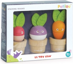 Uroczy zestaw drewnianych doniczek z warzywami od LE TOY VAN wspiera motorykę małą, koordynację ręka–oko oraz wyobraźnię. Dzieci mogą mieszać i składać poszczególne elementy w marchewkę, rzodkiewkę i buraka albo tworzyć własne kombinacje. Zabawka wykonana jest z zrównoważonego drewna, ma filcowe listki i jest ręcznie domalowywana nietoksycznymi farbami na bazie wody.