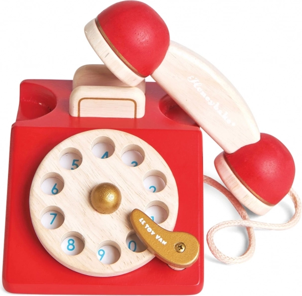 Odkryj urok klasycznego telefonu w wersji dla dzieci. Ten drewniany retro telefon od LE TOY VAN z kolekcji Honeybake zachwyca intensywnie czerwonym kolorem, naturalnymi detalami oraz realistycznymi elementami, takimi jak obrotowa tarcza i dzwonek w słuchawce. Zabawka jest ręcznie domalowana ekologicznymi farbami i zaprojektowana tak, by służyć przez długi czas.