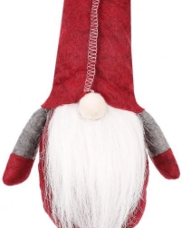 Świąteczny skrzat w czerwonych tonach zachwyca figlarnym wyglądem – wysoka spiczasta czapka, puszysta biała broda i paskowane nóżki staną się nie do przeoczenia sezonową dekoracją. Dzięki solidnemu wykonaniu z filcu i wytrzymałego tworzywa jest lekki, a zarazem mocny i gotowy, by zdobić Twój dom przez całą zimę.