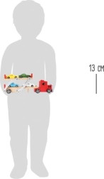 Uwaga, trwa załadunek! Ta solidna drewniana ciężarówka z autkami marki small foot przewiezie jednocześnie aż cztery sportowe autka. Ma ruchomą górną platformę dla łatwego załadunku i rozładunku, zabezpieczającą zaporę przeciwcofaniu oraz wytrzymałe wykonanie z wysokiej jakości drewna i metalu – idealna dla małych fanów motoryzacji i każdej dziecięcej autodrogi.