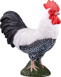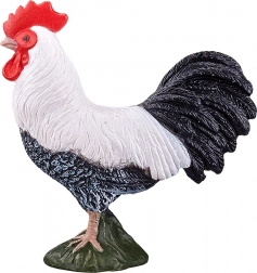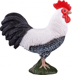 Wiernie ukształtowane pióra, kontrastowe czarno-białe ubarwienie oraz czerwony grzebień zapewniają autentyczny wygląd koguta.