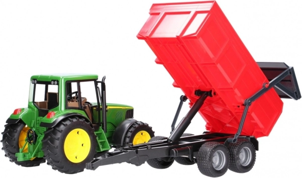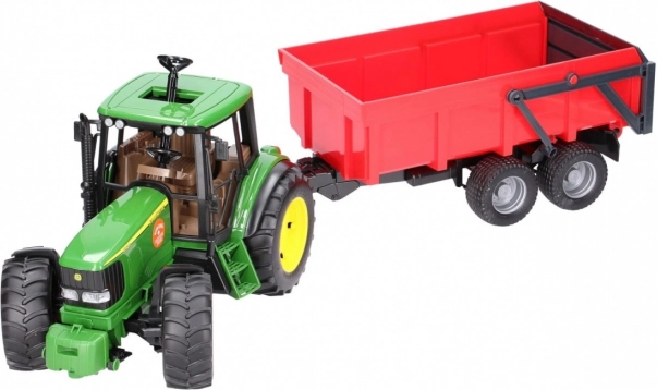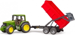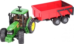 Realistyczny zestaw dla małych farmerów: zielony traktor JOHN DEERE z wywrotką oferuje mnóstwo funkcji do dynamicznej zabawy. Nie brakuje otwieranej maski silnika, sterowania przez przedłużoną kierownicę w dachu oraz opon z bieżnikiem. Przyczepa ma automatyczną tylną burtę ułatwiającą wyładunek. Wysoka niemiecka jakość z wytrzymałego plastiku, skala 1:16.