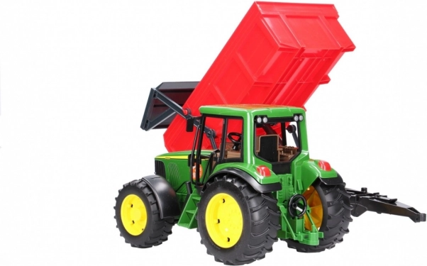 Zestaw traktor JOHN DEERE z funkcjonalną wywrotką zapewnia dzieciom realistyczne doświadczenie prac rolniczych. Traktor jest dopracowany w szczegółach, ma otwieraną maskę, sterowaną przednią oś przez przedłużoną kierownicę w kabinie oraz wyraziste opony z bieżnikiem dla wiernego wyglądu i śladów.