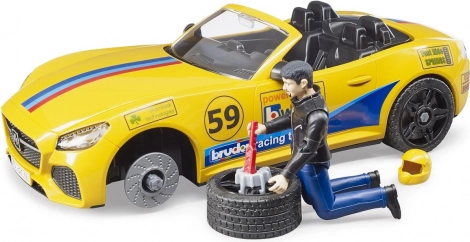 Żółty sportowy wóz z numerem 59 i zdejmowanym dachem zapewnia wyścigowy wygląd i funkcje. Idealny do scenariuszy serwisowych i wyścigowych.