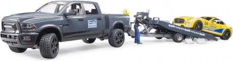 Ten realistyczny zestaw od BRUDER łączy solidny terenowy pick-up RAM z przyczepą transportową oraz żółtym samochodem sportowym ze zdejmowanym dachem. W komplecie jest również figurka kierowcy, więc możesz od razu ruszać na wyścigi lub przewieźć auto na tor. Precyzyjne wykonanie, funkcjonalne elementy i wytrzymały plastik gwarantują długą żywotność i świetne wrażenia z zabawy.