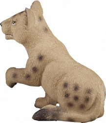 Figurka przedstawia lwiątko w naturalnej pozie z delikatną fakturą futra i autentycznymi cętkami typowymi dla młodych osobników.