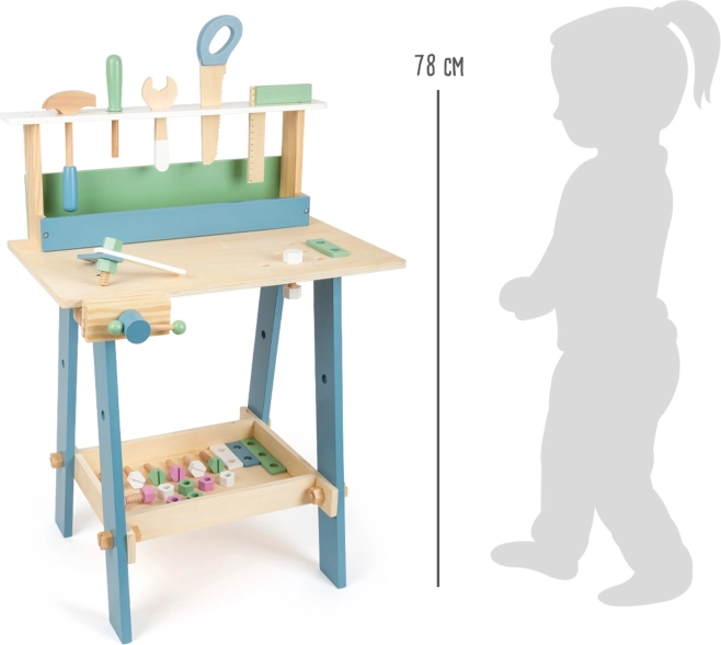Naturalne drewno i pastelowe kolory współgrają z pokojem dziecięcym i salonem, a warsztat będzie ładnym i praktycznym dodatkiem.