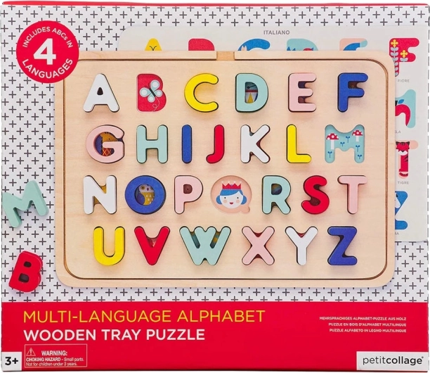 Ten pomysłowy i radosny zestaw łączy naukę z zabawą. Każda literka po podniesieniu odsłania tematyczną ilustrację odpowiadającą danej literze – dzieci utrwalają litery i jednocześnie poznają słówka po angielsku, francusku, włosku i niemiecku. Elementy mają przyjemnie zaokrąglone krawędzie, aby małe rączki mogły je bezpiecznie chwytać.