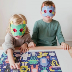 Zabawne puzzle dla dzieci z motywem potworków łączą układanie z interaktywnym szukaniem ukrytych obiektów przy pomocy dwóch masek 3D. Oferują aż 100 elementów, ekologiczny papier FSC i nietoksyczne farby – idealne do rozwoju małej motoryki, uwagi i kreatywności u dzieci od 4 lat.