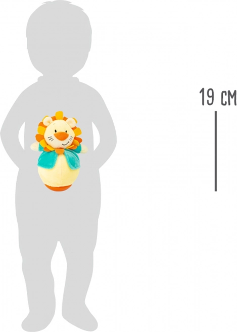 Uroczy pluszowy lew marki Small Foot z nietypową wypukłą podstawą po popchnięciu nie przewraca się, lecz delikatnie kołysze się i wraca do pozycji pionowej. W środku kryje dzwoneczek, który stymuluje zmysły niemowląt. Miękki i bezpieczny towarzysz do aktywności motorycznych i na matę do zabawy już od urodzenia.