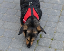 Dzięki szybkozapinanej klamrze i regulowanym paskom szelki łatwo założysz nawet bardziej żywiołowemu psu. Metalowe oczko do przypięcia smyczy zapewnia pewność i kontrolę podczas spaceru.