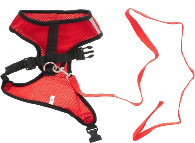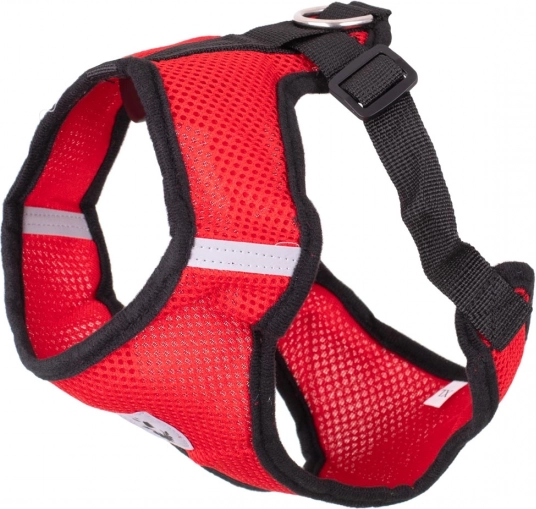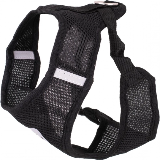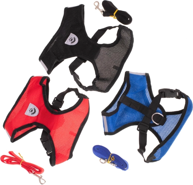 Lekkie i wygodne szelki dla psów z oddychającej siateczki z pętlą w zestawie, regulowanymi paskami oraz elementami odblaskowymi dla bezpiecznych spacerów. Bez nacisku na szyję, łatwe zakładanie i niezawodne zapięcie na klamrę zapewniają komfort nawet bardzo aktywnym pupilom.