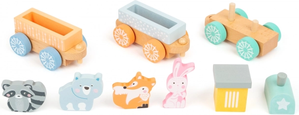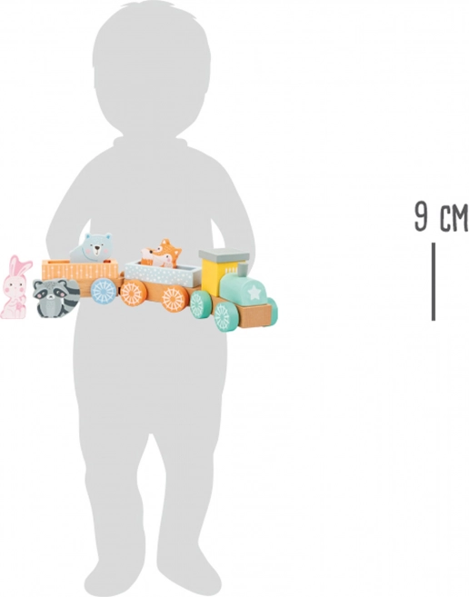 Drewniany pociąg to świetna zabawa dla dzieci od 18 miesięcy. Ten wspaniały zestaw zawiera kolorowe wagony, które są łatwo połączalne, oraz cztery figurki uroczych zwierzątek - lis, zając, szop pracz i niedźwiedź. Lokomotywa i wagony wykonane są z wysokiej jakości drewna i zaprojektowane tak, aby były bezpieczne dla najmłodszych dzieci. Dzięki pastelowym kolorom i prostej konstrukcji ten zestaw jest idealny do rozwijania wyobraźni i umiejętności motorycznych twojego dziecka.
