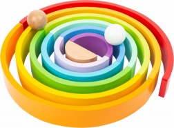 14 kolorowych łuków można układać w tęczę, mosty, tunele i wieże. Dzieci trenują równowagę i wyobraźnię przy każdej nowej kombinacji.