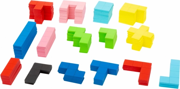- 7 żywych kolorów i 13 kształtów – nieskończone możliwości układania