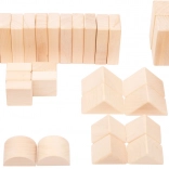 Zestaw oferuje klocki, walce i trójkąty do różnorodnych kombinacji oraz rozwoju percepcji przestrzennej i kreatywności.