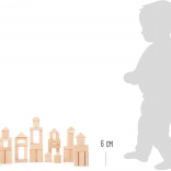 Odkryj radość swobodnej zabawy z naturalnymi drewnianymi klockami SMALL FOOT. Zestaw zawiera 50 gładko szlifowanych elementów, które wspierają kreatywność, motorykę małą i wyobraźnię przestrzenną. Bezpieczne, zaokrąglone krawędzie oraz nielakierowane, surowe drewno zapewniają przyjemny i bezpieczny dotyk. W komplecie znajduje się praktyczny lniany woreczek do łatwego przechowywania i przenoszenia.