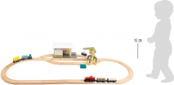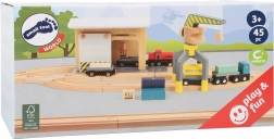 W zestawie jest 25 elementów torów, lokomotywa z wagonami oraz ładunek. Zestaw łatwo połączysz z większością drewnianych kolejek, aby stworzyć jeszcze większy świat zabawy.