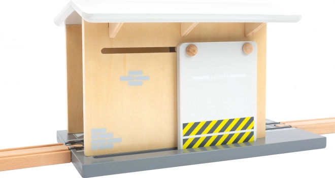 Stacja z przesuwną ścianą i zintegrowanym bloczkiem oferuje dodatkowe możliwości zabawy – od magazynowania po rozładunek i sortowanie towaru.