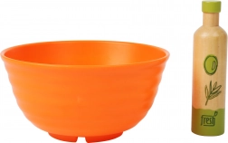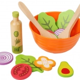 Wymieszaj drewniane plasterki warzyw w misce i dopraw „świeżym” dressingiem – zabawa jak prawdziwa.