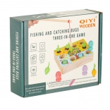5× marchewka, 5× robaczek, 5× rybka, 1× magnetyczna wędka, drewniana baza