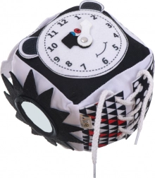 Specjalny haczyk umożliwia łatwe przymocowanie do wózka, łóżeczka lub nosidła. Wysokiej jakości wykonanie z miękkiego poliestru zapewni bezpieczną i komfortową zabawę. Nic dziwnego, że ta kostka jest doskonałym prezentem na każdą okazję.