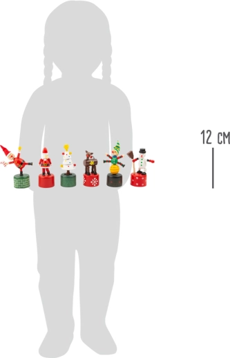 Zestaw 12 sztuk. Czy ten bałwan naprawdę się porusza? Tak, to prawda. Kilka świątecznych, drewnianych figurek porusza się tam i z powrotem, ale tylko wtedy, gdy naciśniesz przycisk na spodzie ich podstawki. Idealne jako prezent w okresie Adwentu.