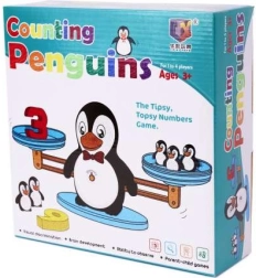 Uroczy pingwin z wagą równoważną zamienia naukę matematyki w zabawę. Dzieci w przystępny sposób poćwiczą liczenie, podstawowe działania i logiczne myślenie. Bogaty zestaw kart, cyfr i figurek pingwinów wspiera kreatywność, koncentrację oraz małą motorykę.