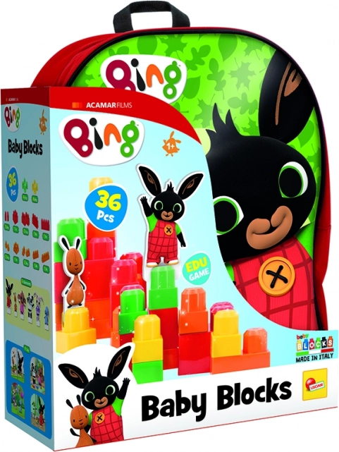 Odkryj zabawny zestaw konstrukcyjny z motywem Bing w praktycznym plecaku. Zestaw zawiera 32 elementy oraz kartonowe samokorygujące elementy, które można wsunąć w klocki ze specjalnymi wypustkami – idealne do rozwijania małej motoryki, logiki i kreatywności dzieci.