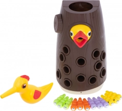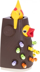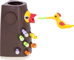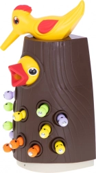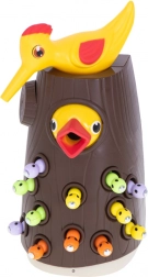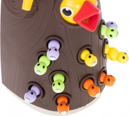 Sprawdź celność za pomocą magnetycznego dzióbka, który pomaga złapać kolorowe robaczki z drzewa.
