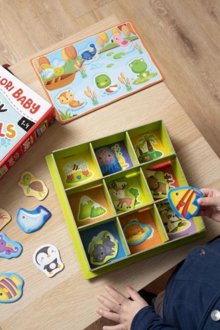 Pudełko Montessori Zwierzęta wprowadza dzieci w barwny świat przyrody poprzez proste sortowanie i dopasowywanie. Dzieci uczą się rozróżniać zwierzęta i ich naturalne środowiska, rozwijają myślenie logiczne oraz koordynację ręka–oko. Dzięki kolorowemu i intuicyjnemu opracowaniu grę szybko opanują nawet najmłodsi.
