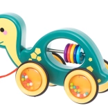 Świetny towarzysz dla Twojego dziecka, który zachwyca nie tylko barwnym designem, ale także interaktywnymi funkcjami. Pociągnij za sznurek i wspólnie wyruszcie na pełne przygód wycieczki! Żółw został zaprojektowany tak, aby stymulować zmysły dziecka dzięki dźwiękom grzechoczących koralików oraz żywym kolorom wspierającym rozpoznawanie barw.