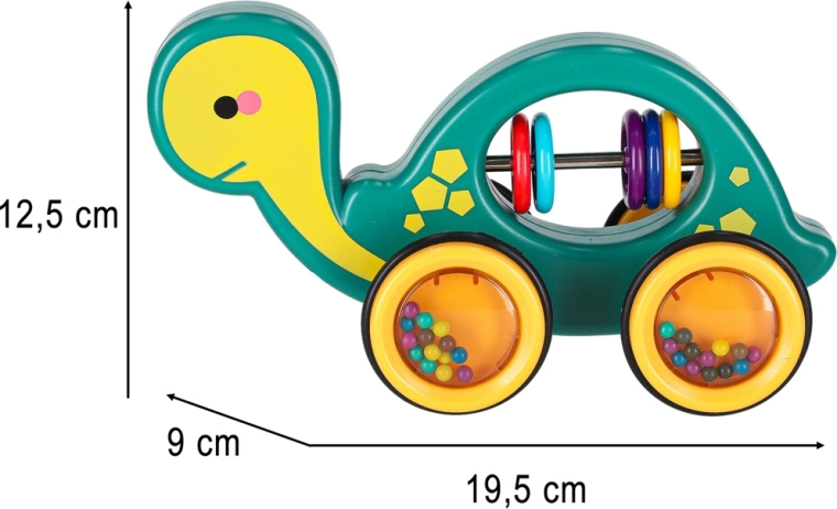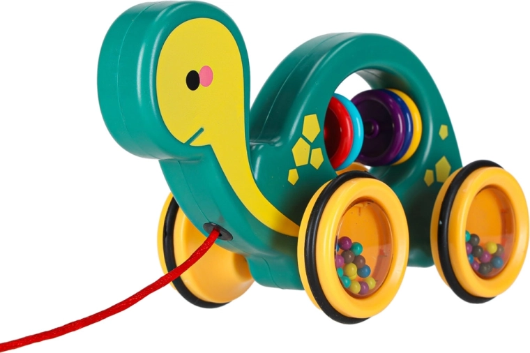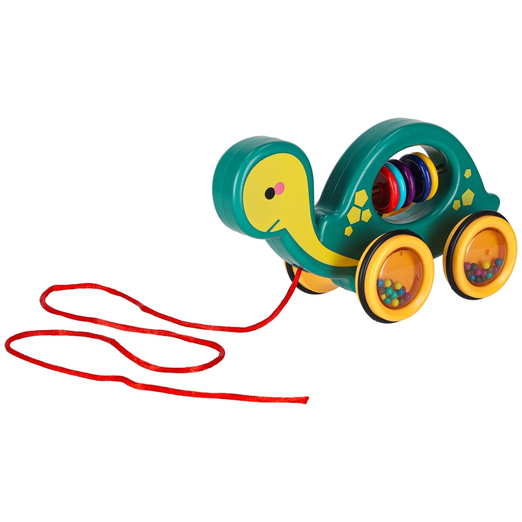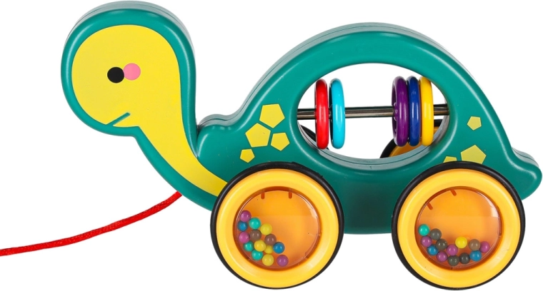 Ten wesoły żółwik do ciągnięcia to idealny towarzysz w domu i na spacerze. Dzięki sznurkowi dziecko łatwo go prowadzi, a przezroczyste kółka z kolorowymi kuleczkami przyjemnie grzechoczą i motywują do ruchu. Zabawka wspiera rozwój motoryki dużej i małej, koordynację oko–ręka oraz rozumienie przyczyn i skutków.