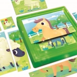 Zestaw zawiera specjalną podkładkę, która ułatwia układanie, a jednocześnie służy do wygodnego przechowywania elementów. Tematyka farmy wprowadza urocze scenki i zwierzątka, które bawią dzieci i jednocześnie poszerzają ich słownictwo.