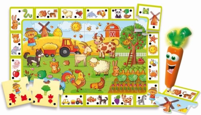 Odkryj zabawną grę dla najmłodszych, w której dzieci za pomocą mówiącego długopisu w kształcie marchewki poznają zwierzęta gospodarskie. Układają dwustronne elementy i rozwiązują proste quizy, które rozwijają ich umiejętności. Idealna dla przedszkolaków od 3 lat, gra wspiera logiczne myślenie, rozpoznawanie zwierząt oraz prawidłowe odpowiadanie dzięki interaktywnemu pióru.