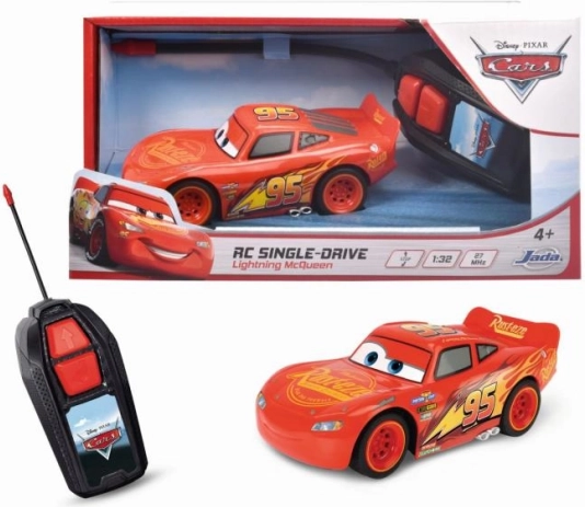 Zdalnie sterowany samochód Zygzak McQueen na licencji Auta 3. 1 kanał (jedzie do przodu, do tyłu i skręca), częstotliwość 27 MHz. Skala 1:32, długość 14 cm.