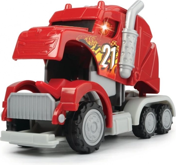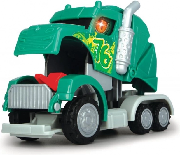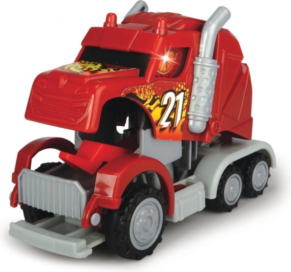 Kabina ciągnika w mgnieniu oka zamienia się w smoka, ciągnik z napędem typu pull-back, z efektem dźwiękowym i migającym światłem. 3 rodzaje – czerwony, niebieski lub zielony. Wielkość 12,5 cm.
